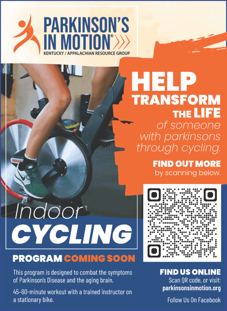 Thank you for considering a donation to Parkinson’s In Motion! Currently, donations are being accepted to support our Indoor Cycling Program. This program is designed to combat the symptoms of Parkinson’s Disease and the aging brain. If you would have any questions about our cycling program, please call 859-338-7430 or contact us directly!